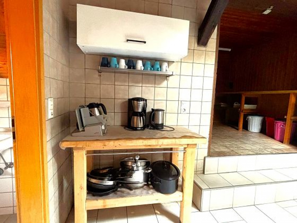 Die voll ausgestattete Küche ermöglicht gemeinsames Kochen und ist der Treffpunkt fürs gemeinsameFrühstücken, Quatschrunden und gemütliche Abende. Gerade für Jugendfreizeiten oder Gruppen, die selbst verpflegen möchten, ist das ein großer Pluspunkt: Hier wächst die Gemeinschaft ganz von selbst.