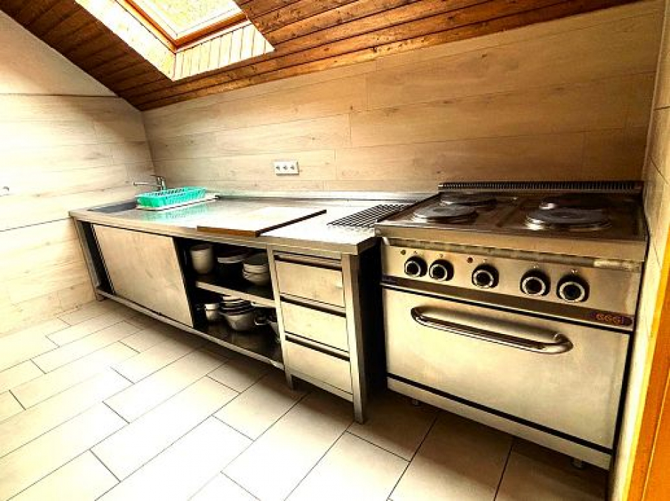 Im Haus ist eine volleingerichtete Küche mit Herd, Backofen, Wasserkocher, 2 Kaffeemaschinen einem großen Kühlschrank, Spüle und ausreichend Geschirr und Töpfen der Übernachtungskapazität des Hauses angepasst. Für große Gruppen steht zudem ein Gaskocher mit übergroßen Töpfen zur Verfügung. Das Haus verfügt über eine Grillstelle.